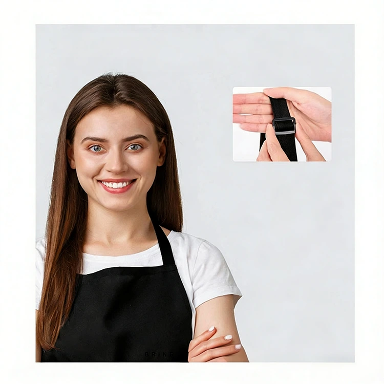 Didžiausią dėmesį skiriame naudotojų patirčiai ir rinkos paklausai, į dizainą integruodami priežiūros patogumą ir gaminio ilgaamžiškumą, sudarydami akivaizdžius diferenciacijos pranašumus, palyginti su panašiais gaminiais. Pirma, lengvas valymas: grynos medvilnės audinį lengva valyti, o daugumą dėmių (pvz., vaško, aliejaus, dulkių) galima pašalinti švelniai nuplaunant vandeniu ir neutraliu plovikliu; taip pat galima skalbti mašinoje, taupant laiką ir pastangas, o po plovimo greitai išdžiūsta ir lengvai nesitraukia, neblunka ir nesideformuoja, užtikrinant ilgalaikį naudojimą. Antra, ilgalaikis patvarumas: aukštos kokybės grynos medvilnės medžiaga yra atspari dėvėjimuisi ir plyšimui, o sustiprintos siūlės ties kaklo dirželiu, juosmeniu ir kituose įtempimo taškuose užtikrina, kad prijuostės nebus lengva nulūžti ar atsirišti, prailginant jo tarnavimo laiką. Trečia, ekonomiška ir nekenksminga aplinkai: palyginti su sintetinių audinių prijuostėmis, mūsų grynos medvilnės prijuostės yra ekologiškesnės ir nekenksmingesnės odai, pasižymi didesniu komfortu ir patvarumu, o dėl priimtinos kainos tai yra ekonomiškas pasirinkimas vartotojams. Ketvirta, klasikinis ir universalus: paprastas juodas dizainas yra ne tik atsparus dėmėms, bet ir tinkamas įvairiems scenarijams bei vartotojų grupėms, nesvarbu, ar tai būtų profesionalus, ar kasdienis naudojimas buityje, jis gali parodyti aptakų ir elegantišką temperamentą. Dėl šių pranašumų mūsų grynos medvilnės juoda prijuostė išsiskiria rinkoje, sulaukia plataus profesionalių vartotojų ir paprastų šeimų pripažinimo, pasižymi plačiomis rinkos perspektyvomis ir ilgalaikiu konkurencingumu.