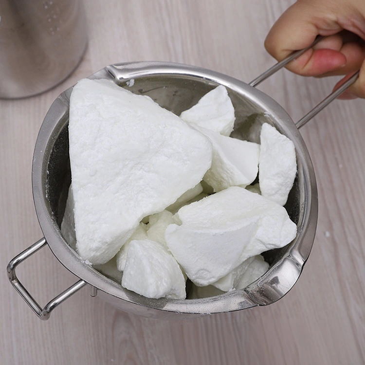 Abi rapsų vaško formos yra sukurtos taip, kad būtų lengva apdoroti, o tai suteikia didelių pranašumų tiek pramonėje, tiek „pasidaryk pats“. Blokų variantas, kurio lydymosi temperatūra yra optimali 48 ℃, greitai ir tolygiai tirpsta esant kontroliuojamam kaitinimui (paprastai per dvigubą katilą) be specializuotos įrangos, todėl sumažėja energijos sąnaudos ir gamybos laikas. Dribsnių variantas, kurio lydymosi temperatūra 70 ℃ ir plona struktūra, greitai ištirpsta maišant su kitais vaškais, užtikrinant tolygų pasiskirstymą ir tikslų lydymosi temperatūrų reguliavimą. Išlydytas rapsų vaškas – nepriklausomai nuo formos – pasižymi puikiu sklandumu, užtikrina pilną, tolygų formų ar talpyklų užpildymą ir sumažina defektus, tokius kaip burbuliukai, įtrūkimai ar nelygūs paviršiai. Jis vėsta ir kietėja pastoviu greičiu, todėl meistrams ir gamintojams suteikiama pakankamai laiko pakoreguoti vašką, pridėti dekoracijų ar maišyti su kitomis medžiagomis prieš stingdami. Blokelių formą lengva tvarkyti – pjaustant arba sutarkuojant galima tiksliai kontroliuoti dozę, o dribsnių forma palengvina greitą maišymą ir sumažina medžiagos švaistymą. Abu variantai išardomi be vargo, išlaiko savo formą ir tekstūrą, neskilinėja ir neprilimpa prie formų, pagerina gamybos efektyvumą ir sumažina gaminio žalą.